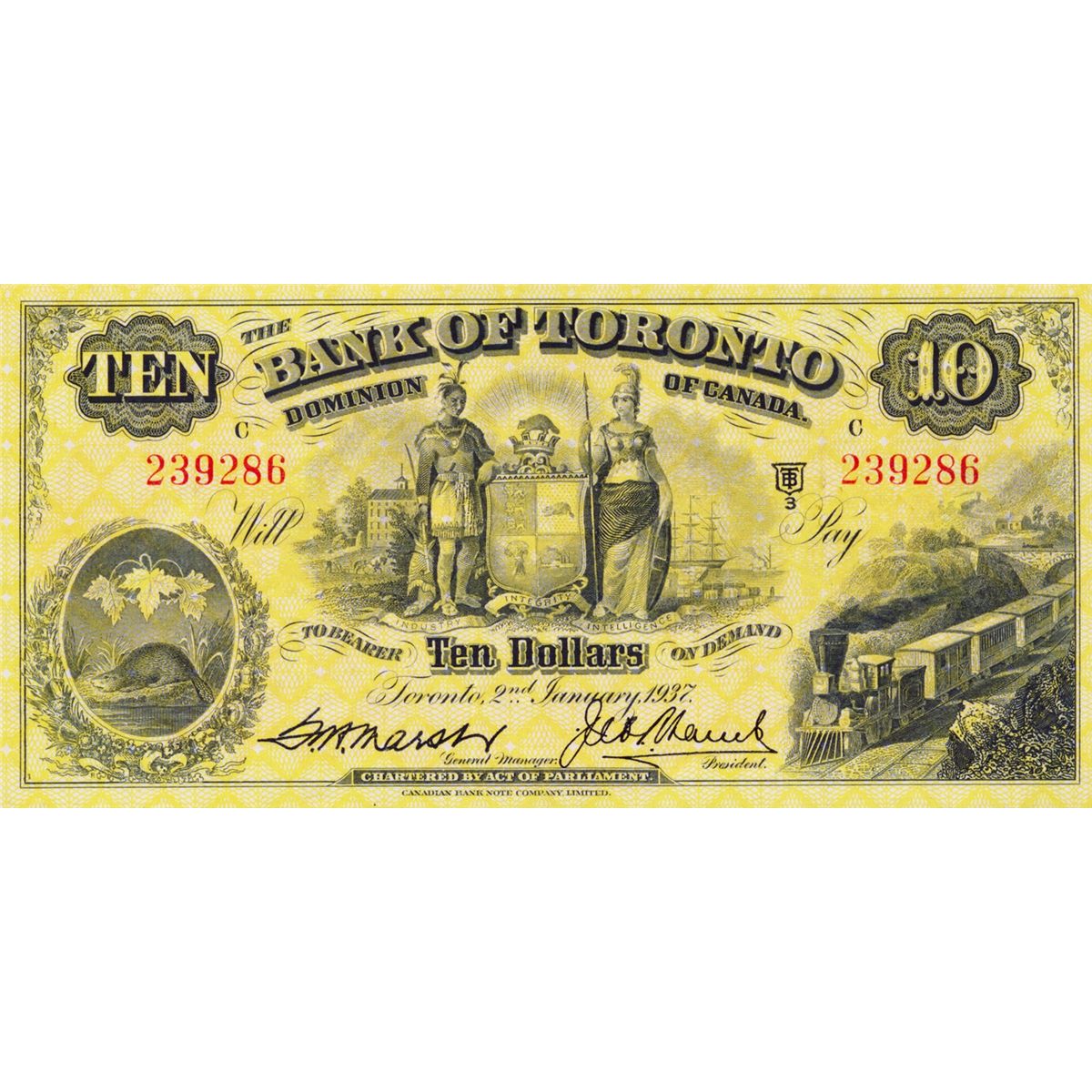 THE BANK OF TORONTO. $10.00. Jan. 2, 1937. CH-715-24-12. No. 239286/C. PMG Very Fine-35EPQ. The appearance of a higher grade than assigned.