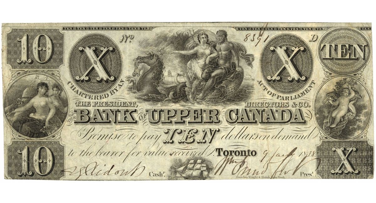 $10.00. 1 Jan., 1838. CH-770-12-30. No. 8391/D. Hinge on back at centre. Fine/VF.