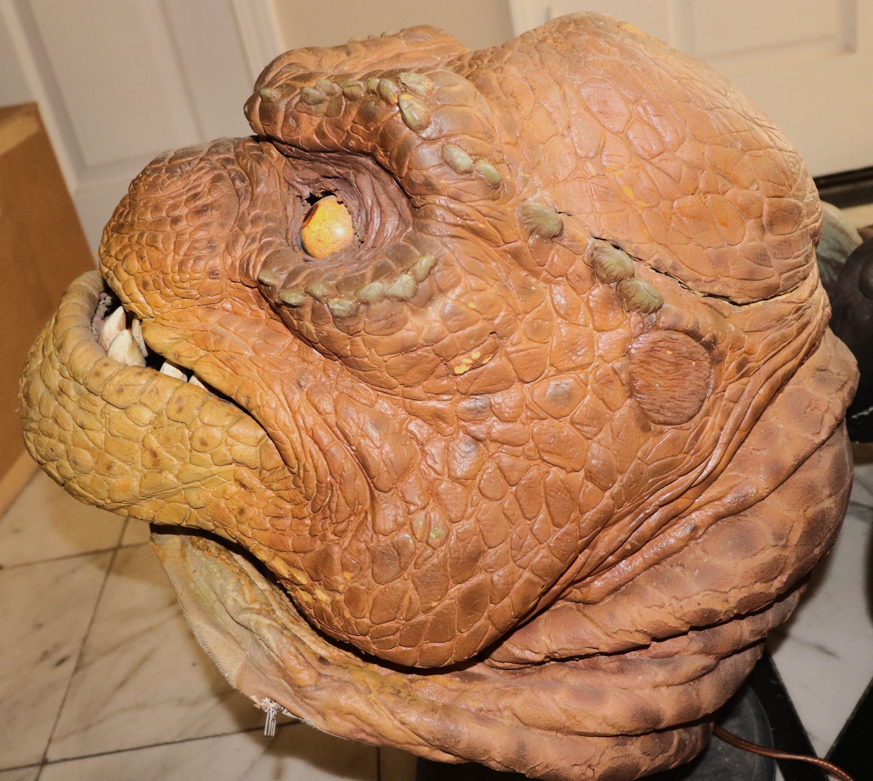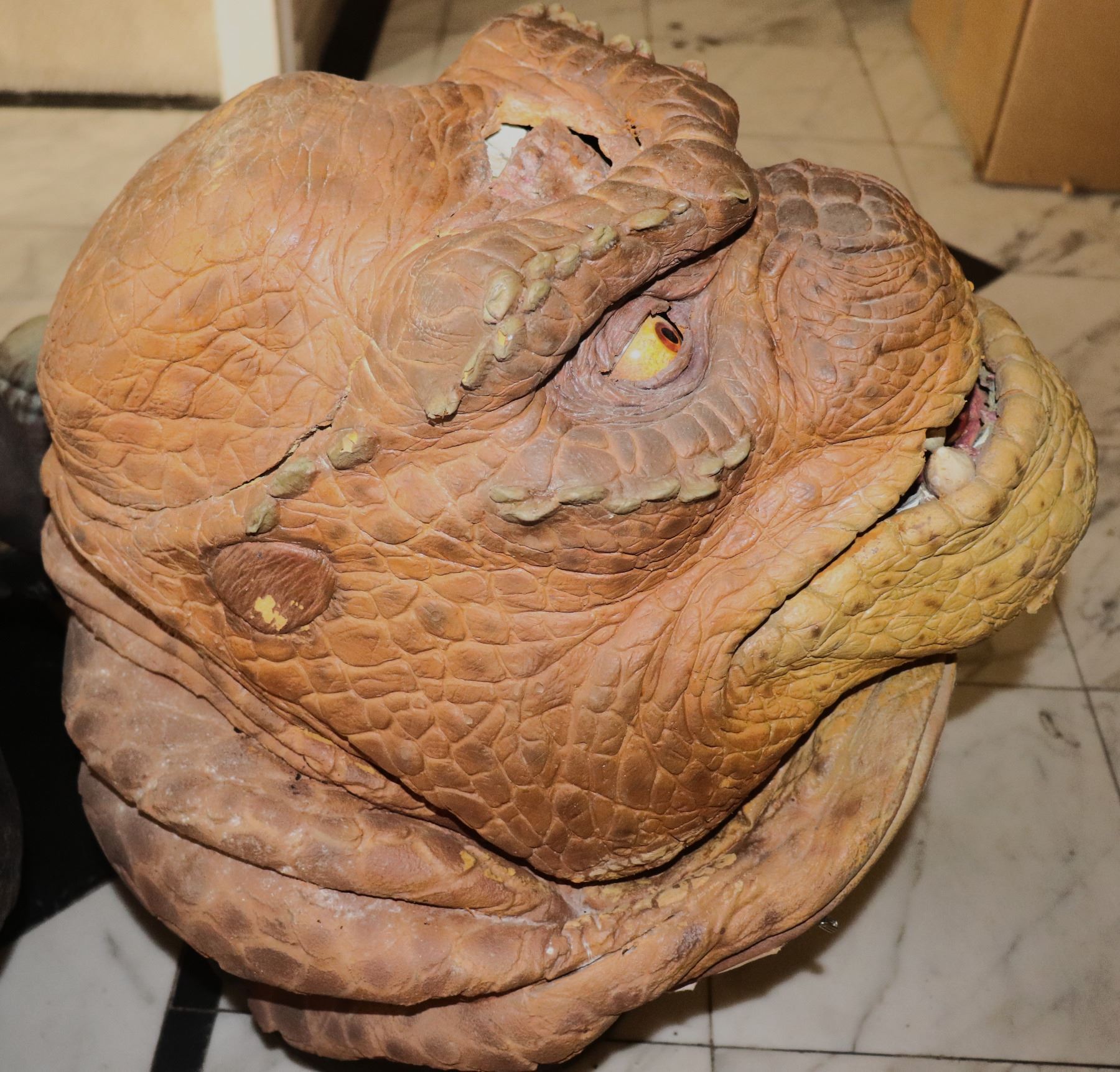 The animatronic head has been found and is included! The foam latex hands are rough, but the head and full body are polyfoam filled latex and remains in great reasonably supple condition! No feet.
