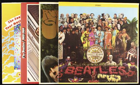 Four scarcer Beatles albums, includes: 1) Capitol ST-2442 "Rubber Soul" green label with purple 'C' logo, Disc MT-, Jacket VG++ , 2) Capitol SMAS-2653 "Sgt. Pepper's..." green label with purple 'C' logo, Disc MT-, Jacket w insert VG+, 3) Capitol SMAL-2835 "Magical Mystery Tour" green with purple 'C' logo, Disc MT-, Jacket VG (booklet dislodged from spine), 4) Apple SKBO-3403, "The Beatles/1962-1966" first pressing with custom inner sleeves. Discs MT-, Jacket VG++