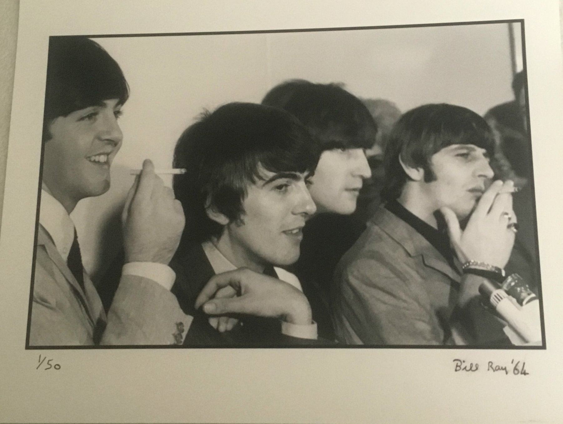 Beatles Press Conference 1964 by photographer Bill Ray. Later silver gelatin print signed by photographer. Please note signature and edition number is smudged. Supplied with coa. Image: 14x9.25 inches. Mounted and framed.