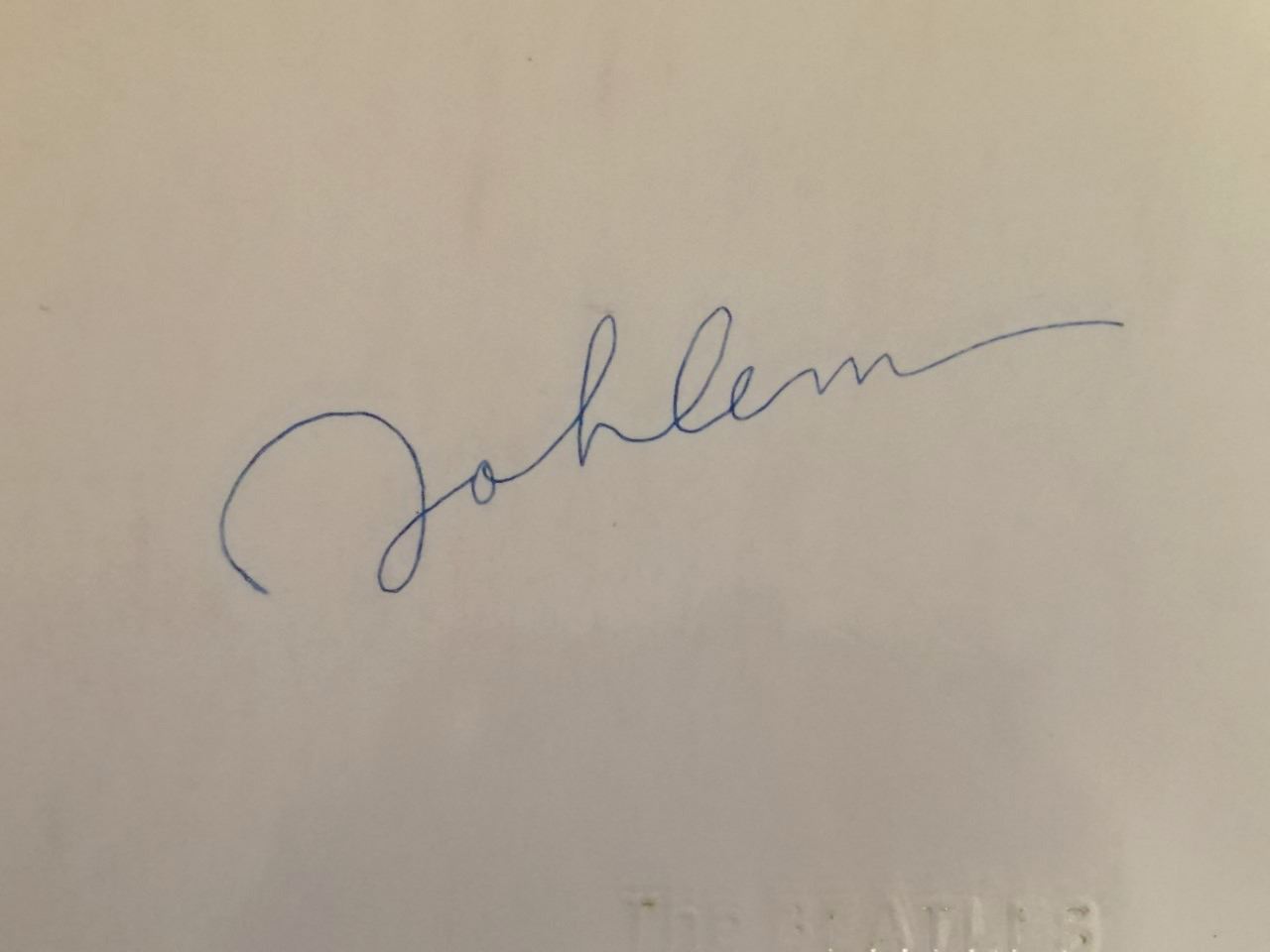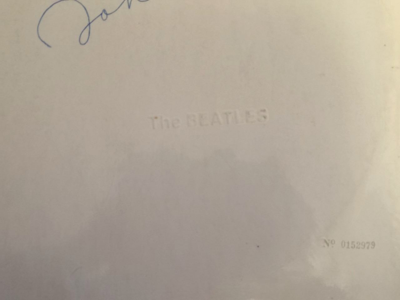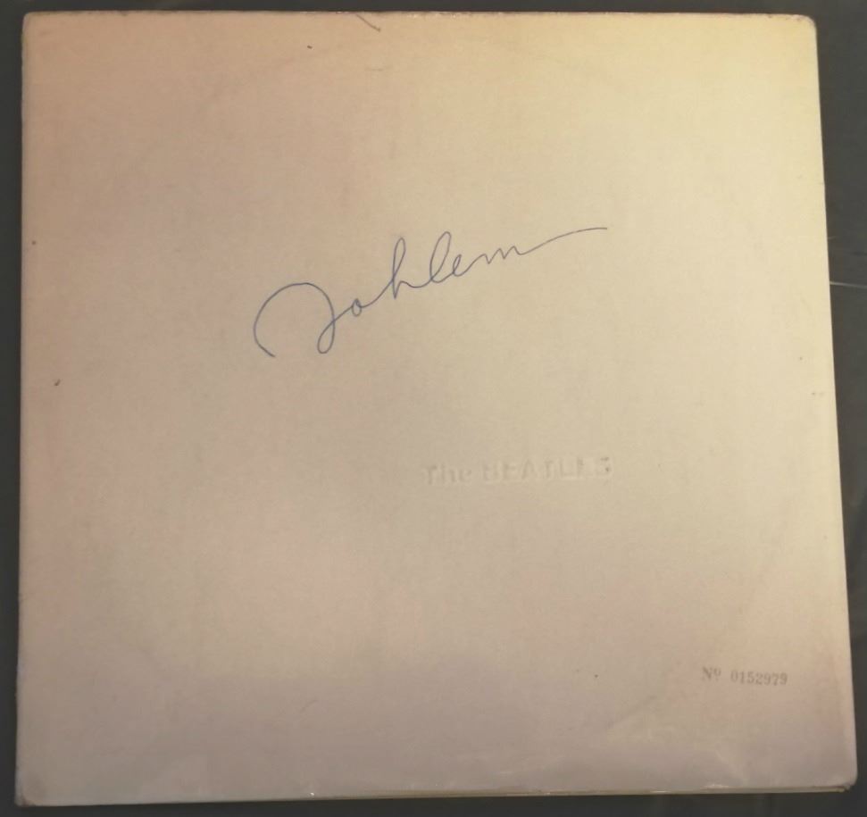 JOHN LENNON: Arguably one of the Beatles greatest albums 'The white' album, and one of the original pressings bearing a low number. Signed by John Lennon in biro across the middle of the sleeve. Professionally framed. Supplied with coa.