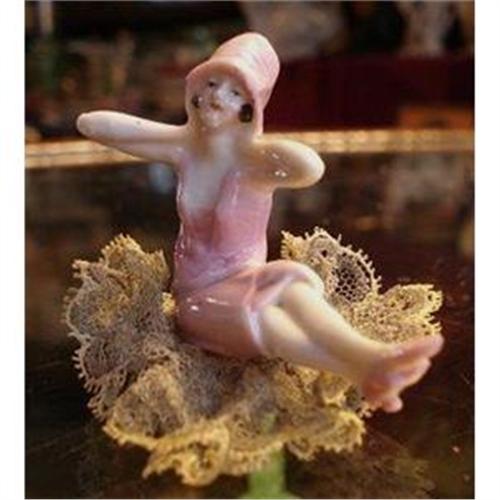 FABULOUS TINY PIN CUSHION DOLL, HAND PAINTED AND IT IS EXQUISITE!, as per images - DRESSED IN PINK, DRESS, HAT AND SHOES WITH ARMS EXTENDED, SITTING ON THE LOVELY LACE,Excellent condition, mint!, but for the lace it did suffer from the age a bit, Measures about 2 1/4" high - US Buyer to pay 7.00 for shipping plus insurance,THANKS.