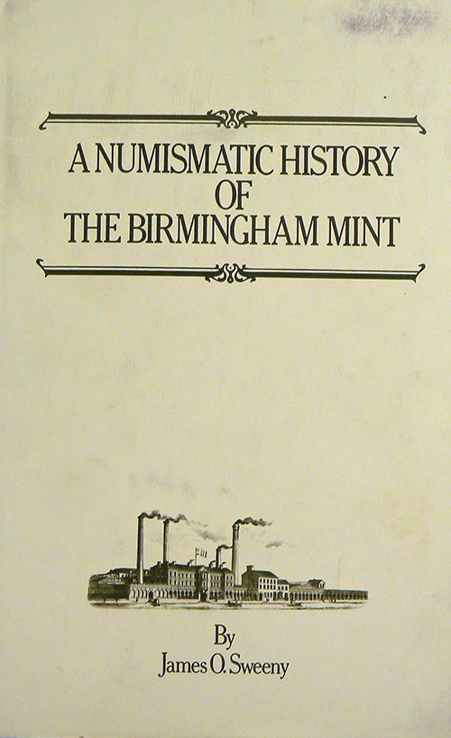 Sweeny, James O. A NUMISMATIC HISTORY OF THE BIRMINGHAM MINT. Birmingham, 1981. 8vo, original brown leatherette, gilt; jacket. xii, 245, (1) pages; illustrated. Jacket wear; else fine. A valuable contribution, with a full catalogue of coinage issues.