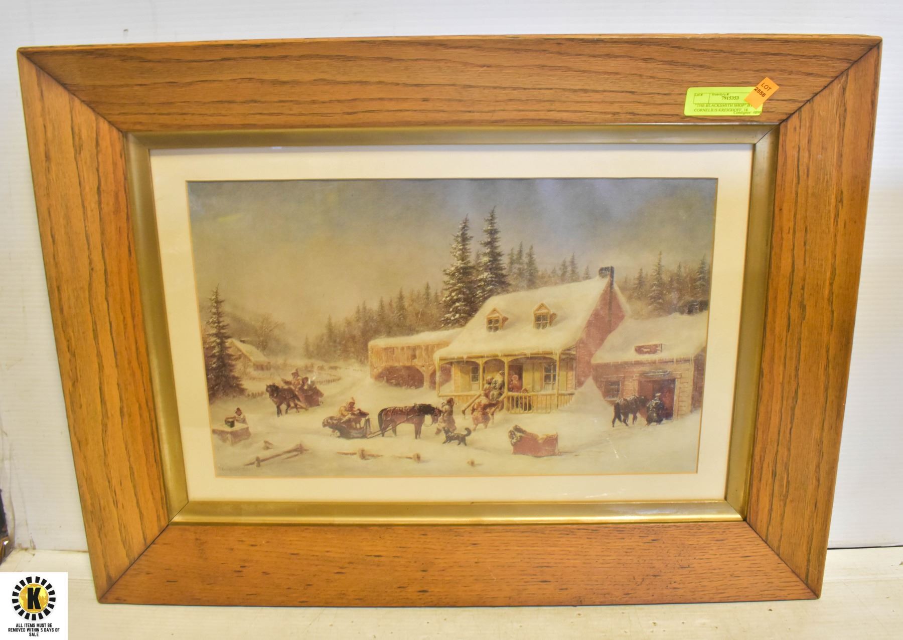 LITHOGRAPH PRINT, 8 X 18 INCHES, FRAME SIZE 20 X 27.5 INCHES