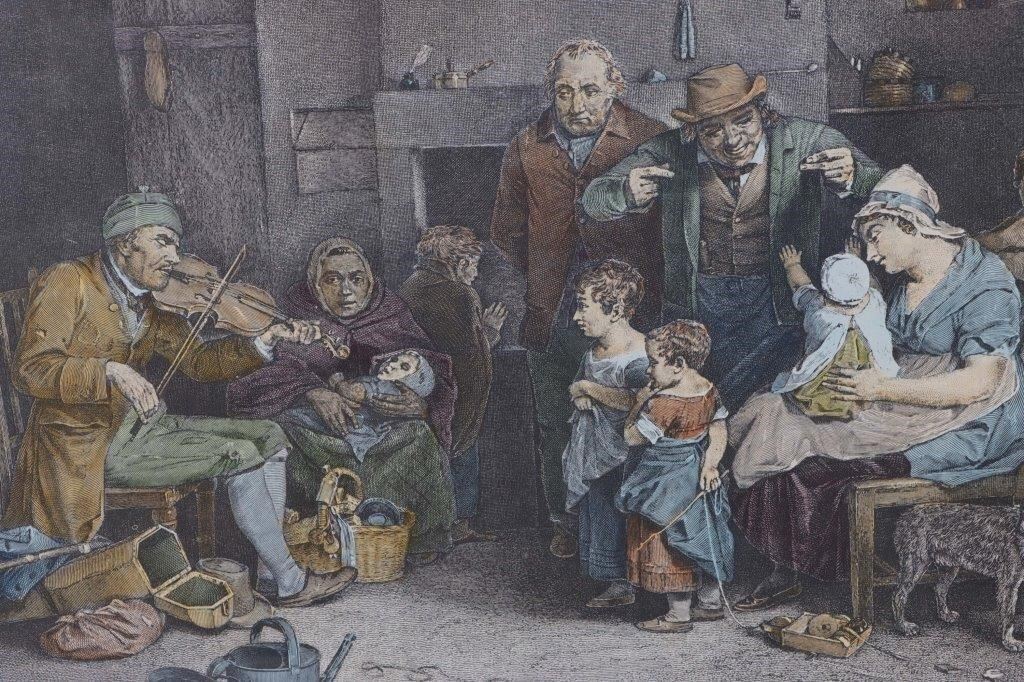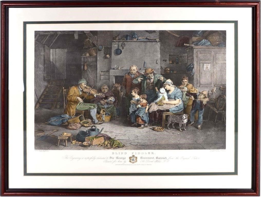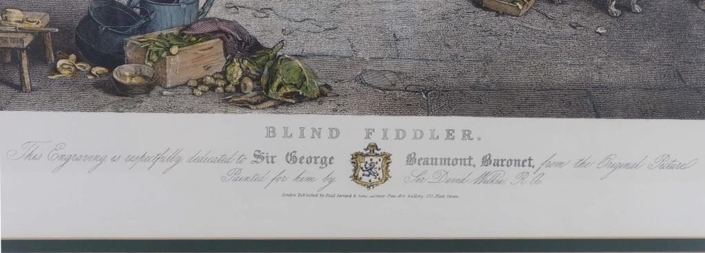 "The Blind Fiddler" David Wilkie engraved Raimbach framed. Original by David Wilkie in 1811 engraved later by Raimbach.