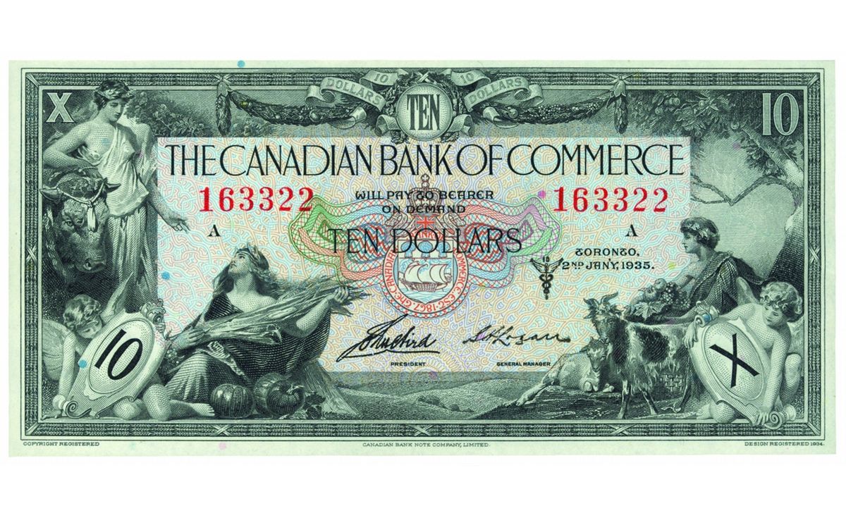 THE CANADIAN BANK OF COMMERCE. $10.00. 2nd JAN'Y, 1935. CH-75-18-06. Aird-Logan. No.163322/A. PMG graded Gem Uncirculated-65 EPQ.