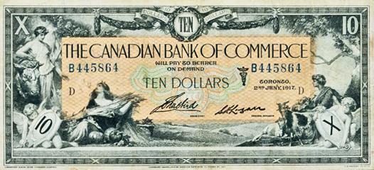 THE CANADIAN BANK OF COMMERCE. $10.00. Jan. 2, 1917. CH-75-16-04-12a. No. 445121/D. PMG graded Very Fine-20.