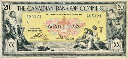 THE CANADIAN BANK OF COMMERCE. $20.00. Jan. 2, 1917. CH-75-16-04-20a. No. 485121/C. PMG graded Very Fine-25. Scarce.