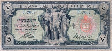THE CANADIAN BANK OF COMMERCE. $5.00. Jan. 2, 1917. CH-75-16-04-06d. No. 552067/C. PMG graded Fine-15.