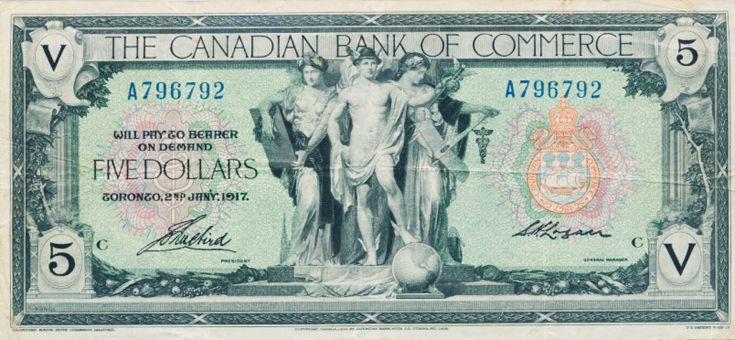 $5.00. Jan. 2, 1917. CH-75-16-04-06a. No. A796792/C. Small Logan. PMG graded Very Fine-25.