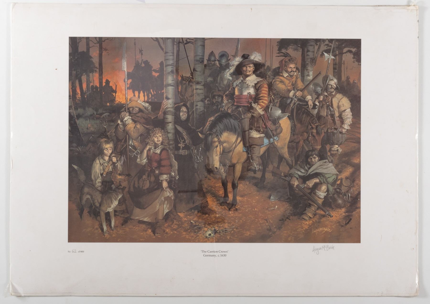 Lithograph 'The Carrion Crows Germany, c. 1630' by Angus McBride. 23.25 x 33 inches, signed by Angus McBridge in the bottom margin. Minor bumped corners.