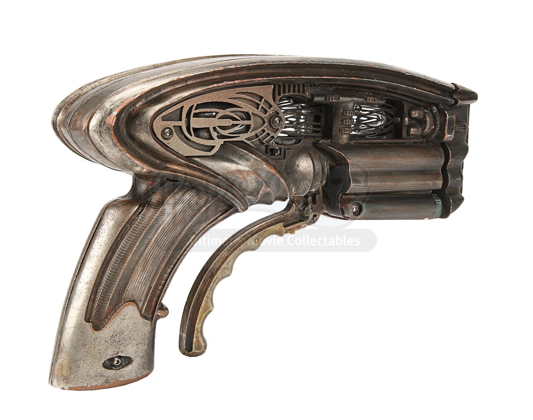 Well used, the costume and pistol display signs of production wear and remains in good condition. Dimensions (costume, displayed): 65 cm x 68 cm x 198 cm (25 ½” x 26 ¾” x 78”); (pistol): 28 cm x 5 cm x 16 cm (11” x2” x 6 ¼”)