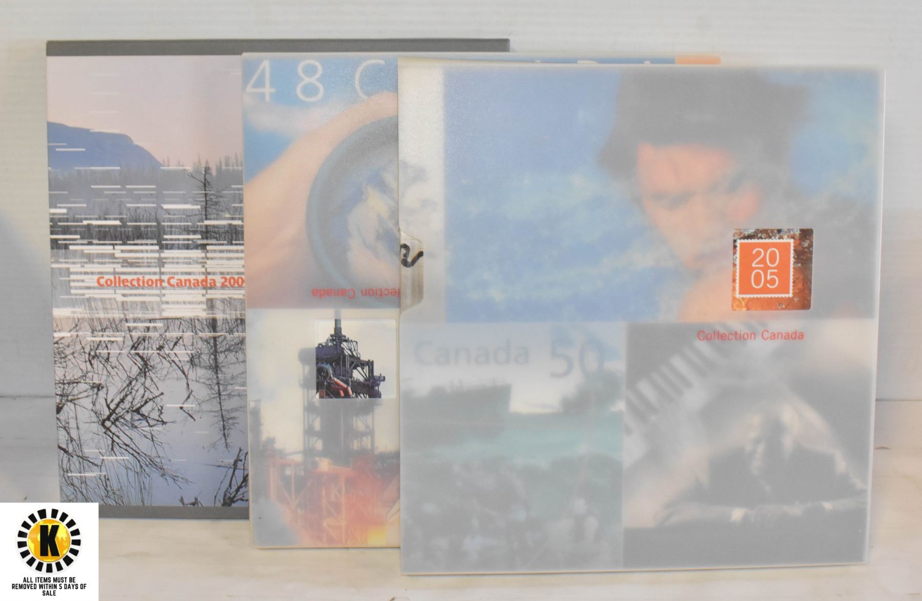 COLLECTIBLE YEARS 2001, 2003, 2005 HARDCOVER WITH SLEEVES STAMP COLLECTORS ALBUMS, UNUSED.