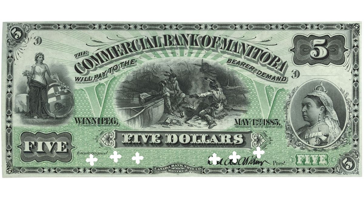 $5.00. May 1, 1885. CH-170-10-02S. A full colour Specimen. No serial number. Punch cancelled at signature area. A pristine, uncirculated Specimen.