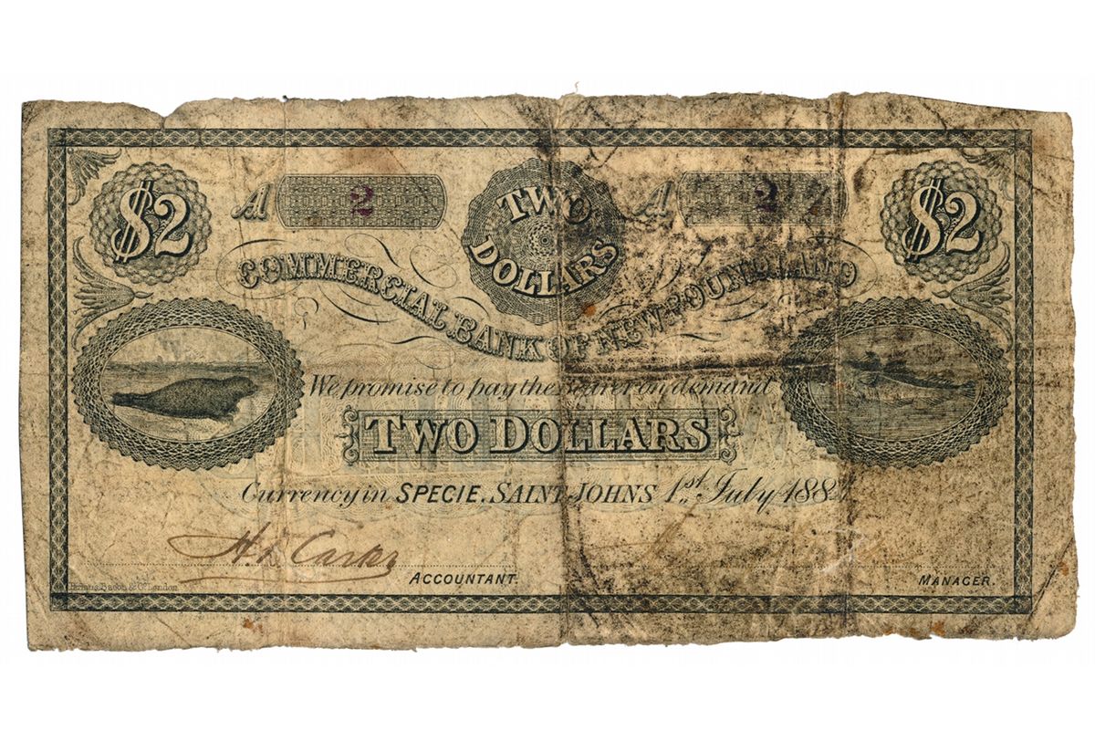 THE COMMERCIAL BANK OF NEWFOUNDLAND. $2.00. July 1, 1884. CH-185-16-06. No. A2. Soiled at right half of note. An overall Very Good note. Ex. TICF Sept. 29-30, 2006. Lot #33.