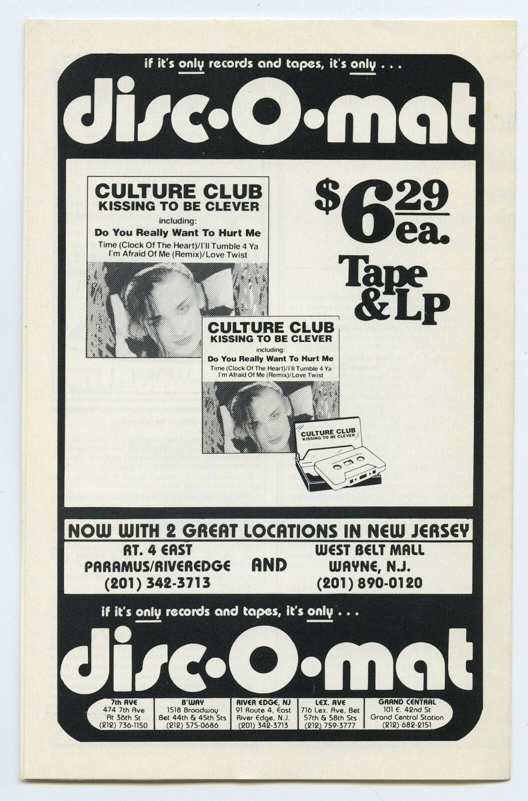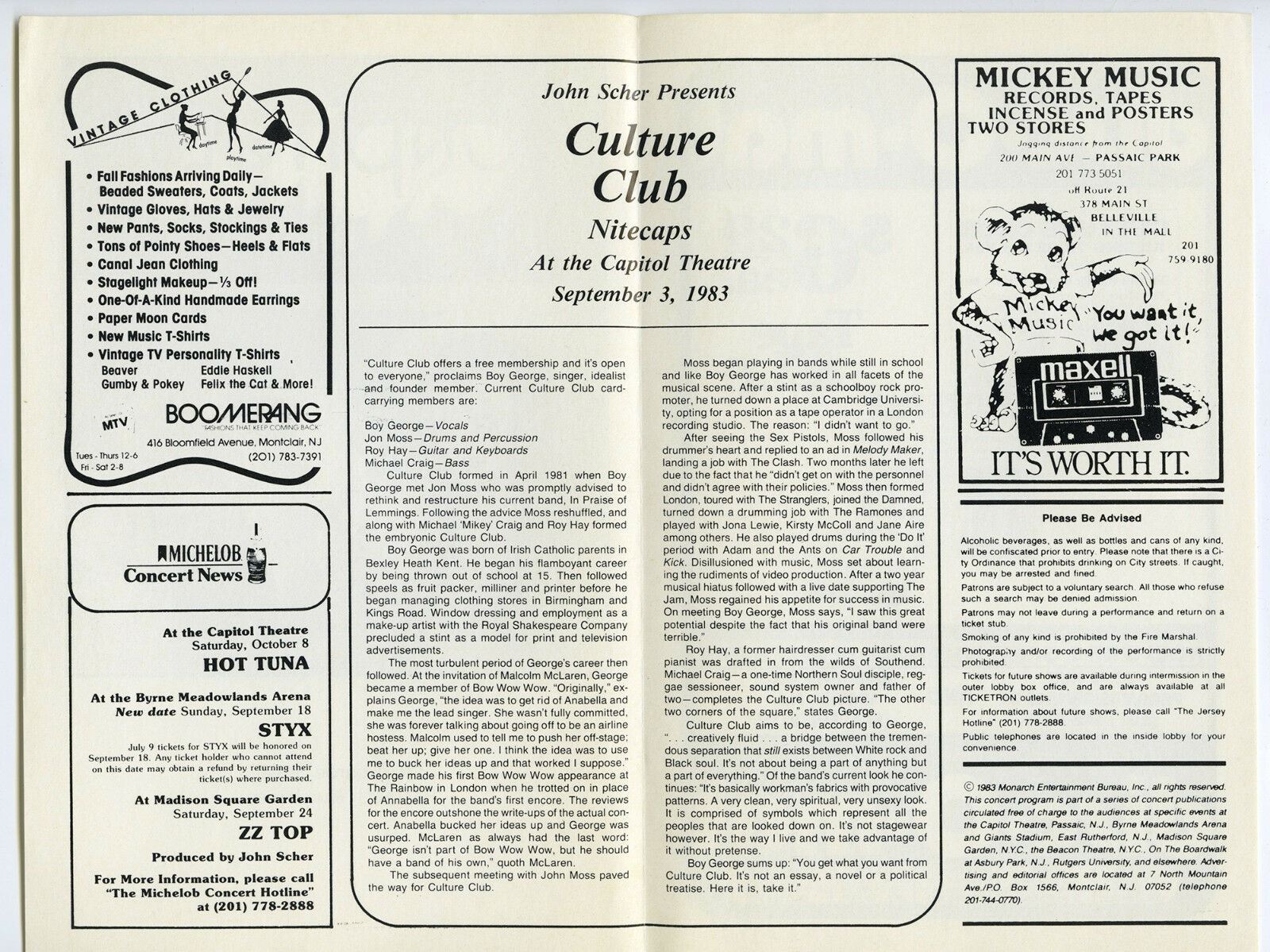 THE CULTURE CLUB (Boy George) Authentic 1983 One-Show-Only Concert Program