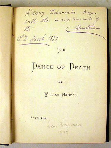 By William Herman (pseudonym of Ambrose Bierce), author`s copy, inscribed in ink on title page "Harry Edwards - with the compliments of the author - S.F. March 1877" and in pencil "San Francisco - 1877", also retains bookplate from the Skull and Bones Lib