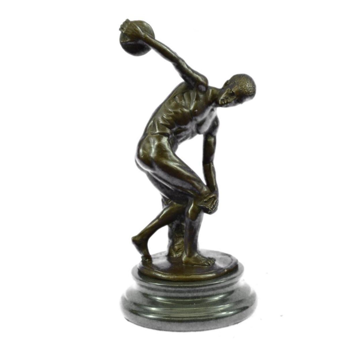 This sculpture is 100% hot cast bronze metal and was handmade by artists using the ancient lost wax casting process.  This sculpture contains no resins or cheap fillers. This sculpture is mounted on a real marble base. Condition: New Bronze Dimensions with Marble Base:Height 10" x Width 7" Marble Dimensions: 5" Height without base: 8" Weight : 7 LBS Signature: Myron Original or Reproduction: Reproduction