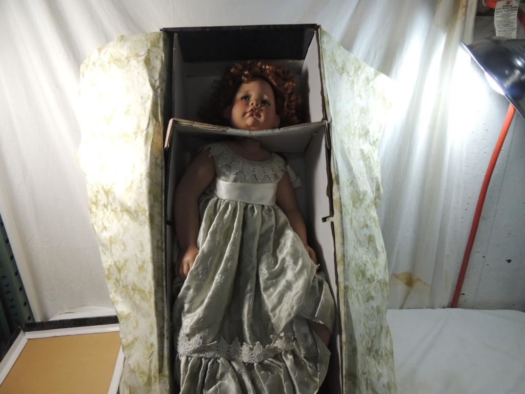 COLLECTIBLE DOLL, LARGE DOLL, ORIGINAL BOX, FROM PRIVATE DOLL COLLECTION, DESIGNER DOLL, LIMTED EDITION, COA, AS SHOWN SEE PHOTO FOR MORE DETAILS.