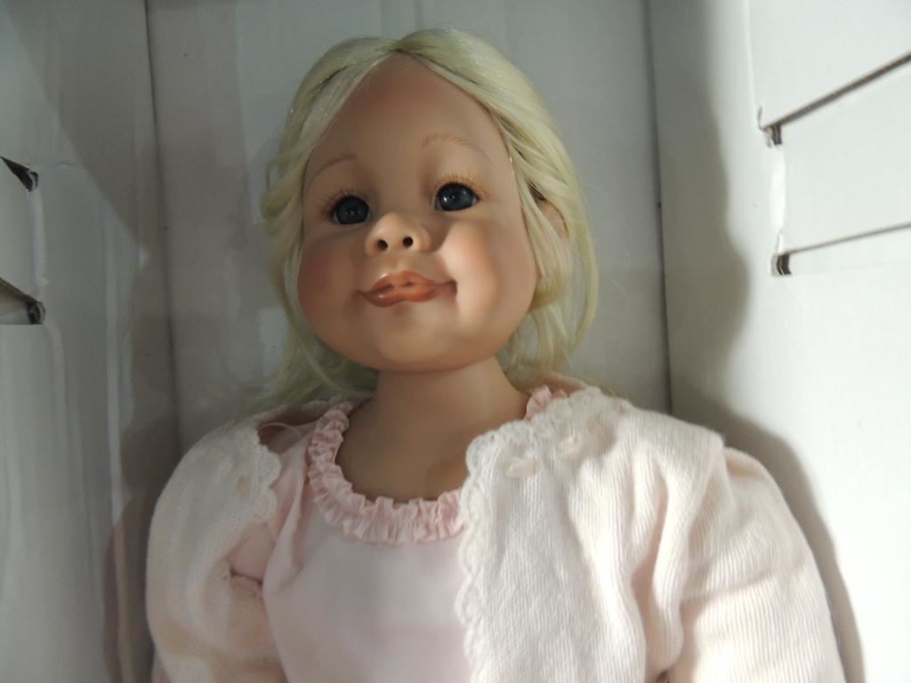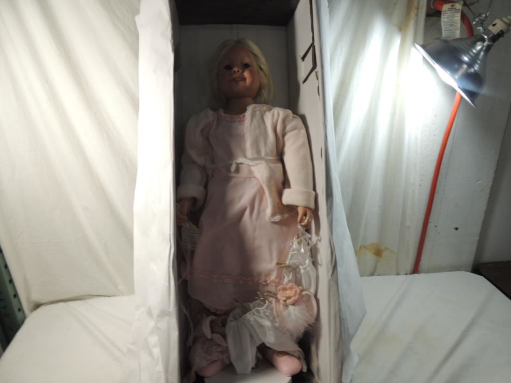 COLLECTIBLE DOLL, LARGE DOLL, ORIGINAL BOX, FROM PRIVATE DOLL COLLECTION, DESIGNER DOLL, LIMTED EDITION, COA, AS SHOWN SEE PHOTO FOR MORE DETAILS.