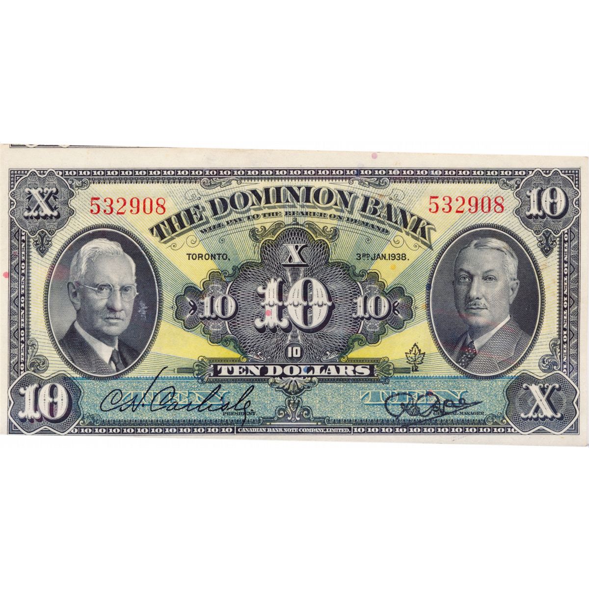 THE DOMINION BANK. $10.00. Jan. 3, 1938. CH-220-28-04. No. 532908. CCCS graded Unc-64.