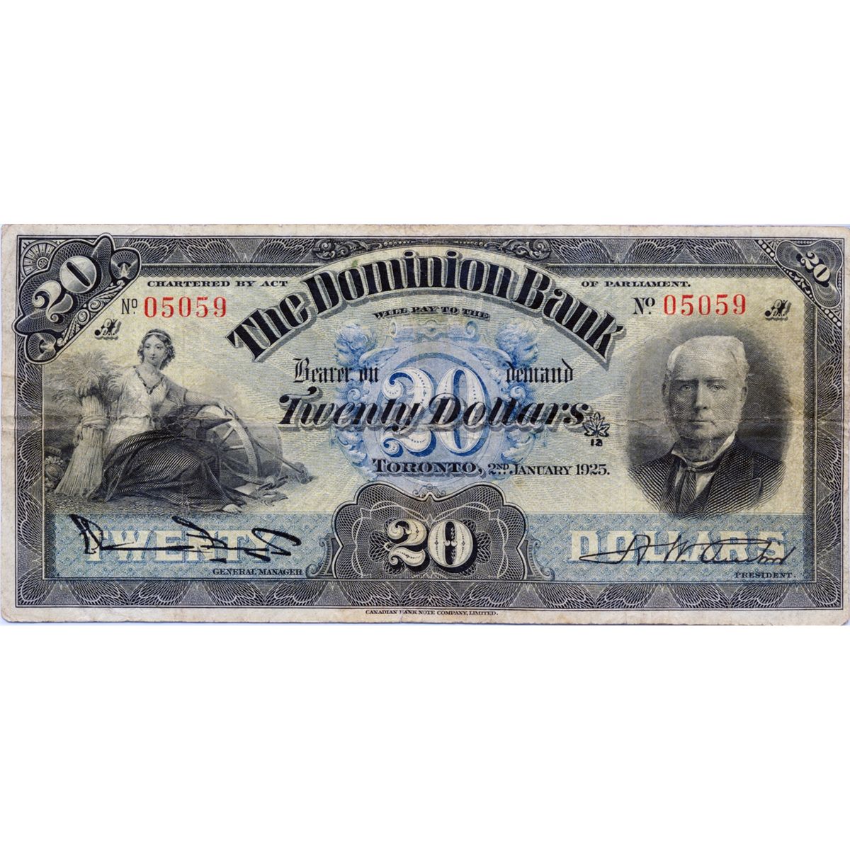 THE DOMINION BANK. $20.00. Jan. 2, 1925. CH-220-20-08. No. 05059/A. PMG graded Very Fine-20.