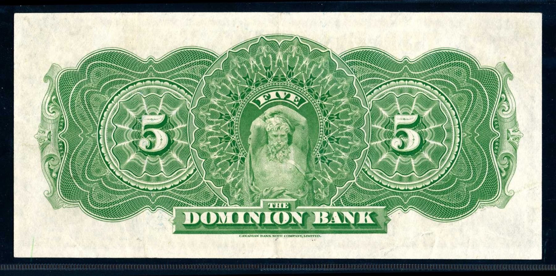 THE DOMINION BANK $5.00 1925 CCCS Banknote Very Fine