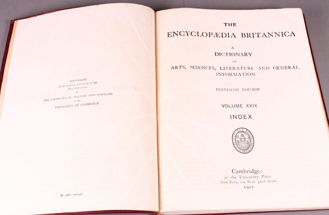THE ENCYCLOPAEDIA BRITANNICA, 29 Vols. 1910-11.
