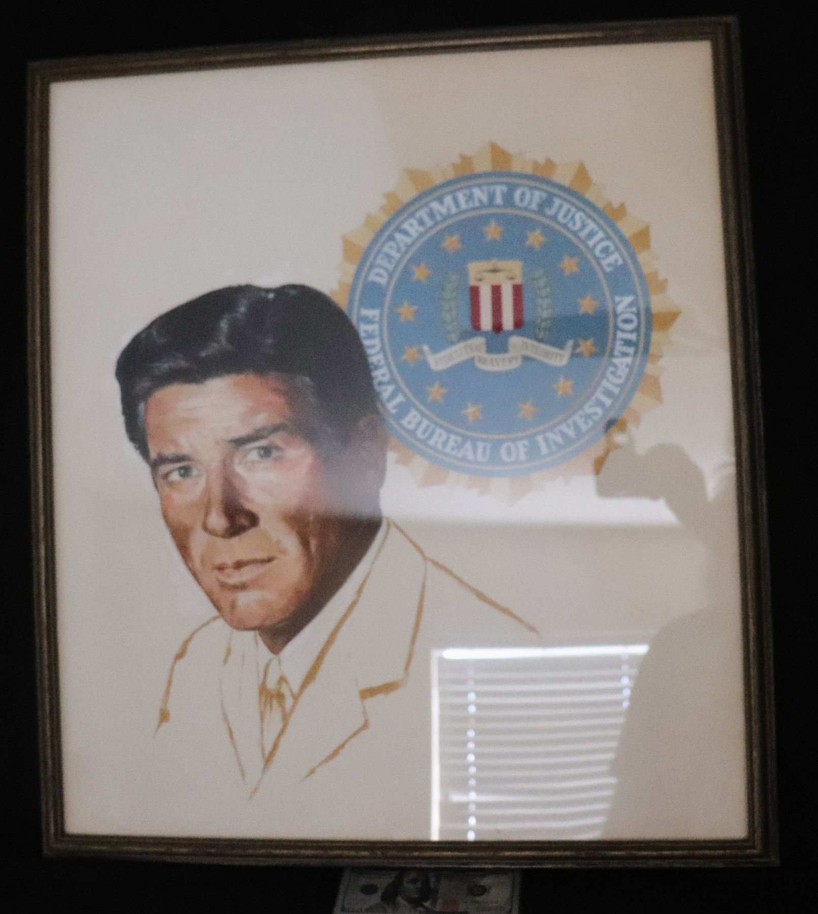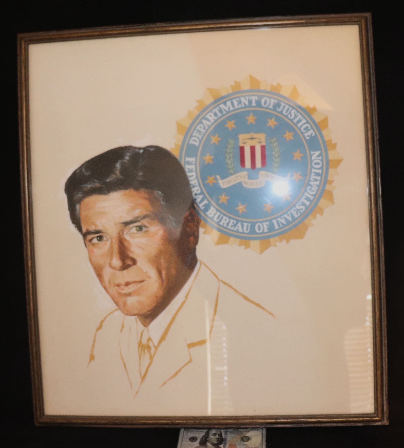 THE FBI 60's TV EFREM ZIMBALIST JR HAND PAINTED PORTRAIT FROM HIS OFFICE!