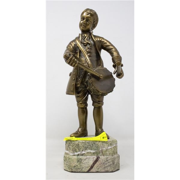 BRONZE STATUE OF DRUMMER ON MARBLE BASE