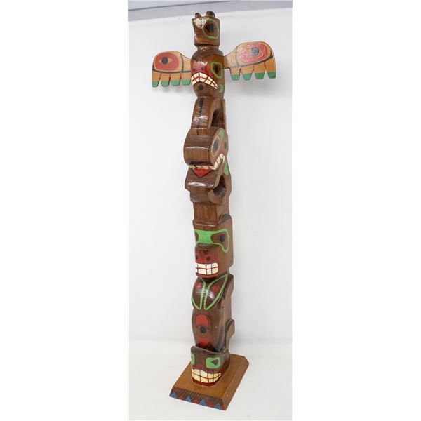 2 FOOT TALL HAND CARVED WOODEN TOTEM POLE