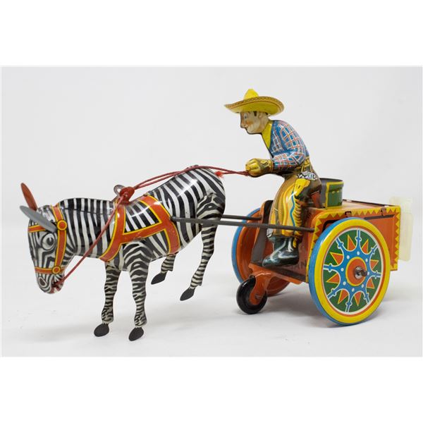 GERMAN MADE ZEBRA CART TIN WIND UP TOY