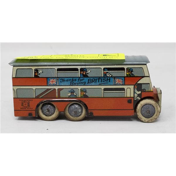 ANTIQUE TIN WIND UP ENGLISH BUS