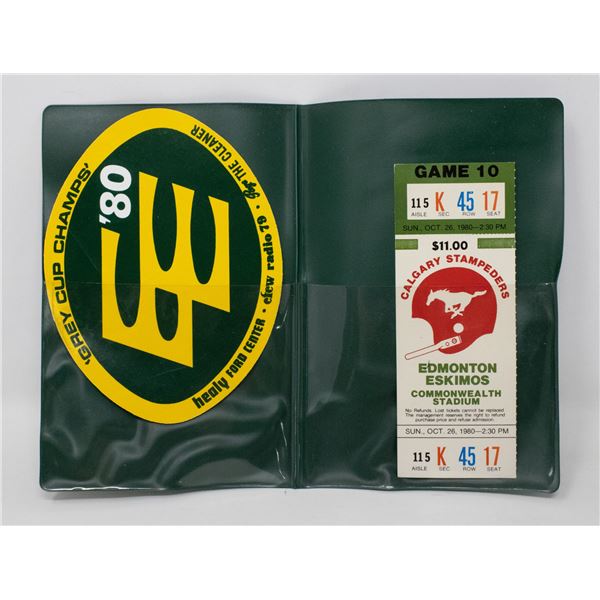1980 EDMONTON ESKIMOS TICKET, STICKER AND PASS