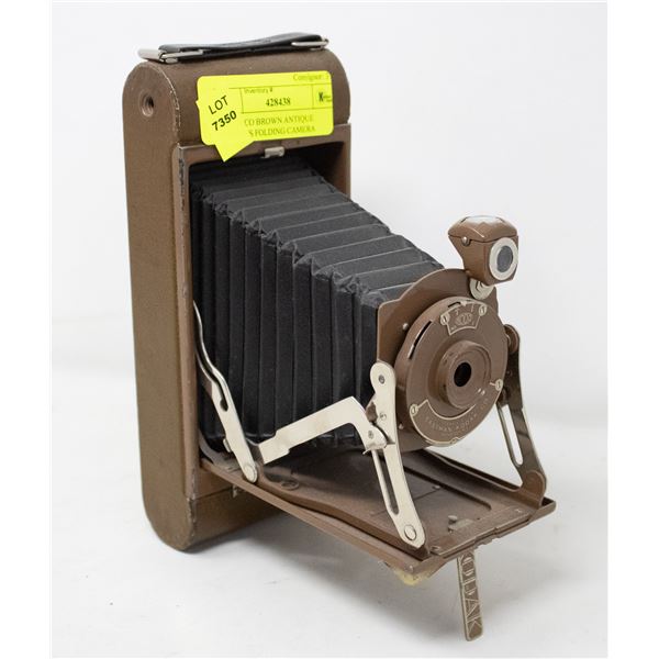 ART DECO BROWN ANTIQUE BELLOWS FOLDING CAMERA