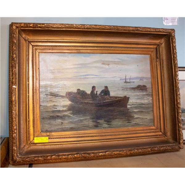 1800S ORNATE FRAMED BOAT PAINTING ORIGINAL