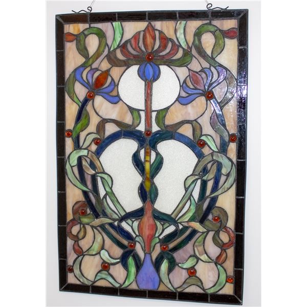 ART NOUVEAU STYLE LEADED STAIN GLASS WINDOW
