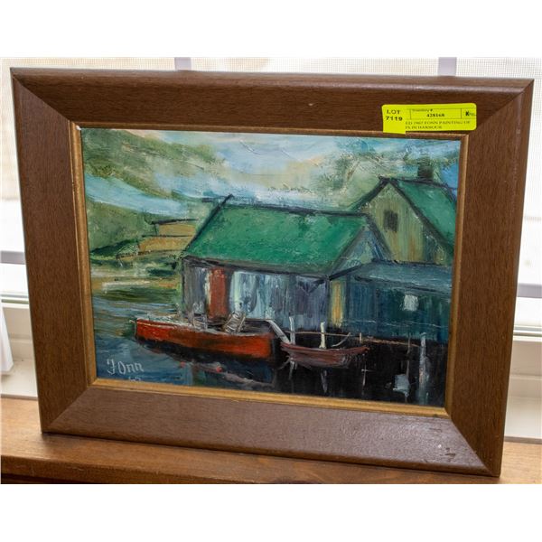 SIGNED 1967 FONN PAINTING OF BOATS IN HARBOUR
