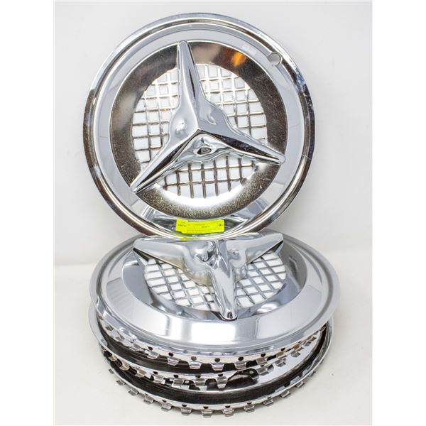 SET OF FOUR VINTAGE CAR HOT ROD HUBCAPS UNUSED
