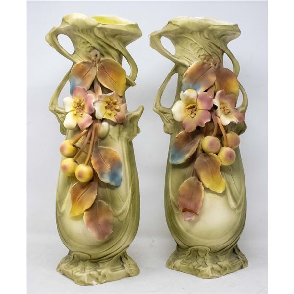 PAIR OF LARGE ORNATE HAND PAINTED VASES AS IS