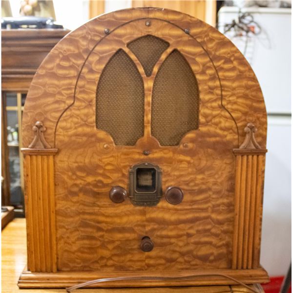 ANTIQUE CATHEDRAL STYLE TABLE TOP TUBE RADIO