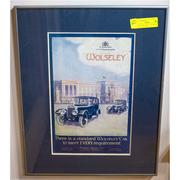 ORIGINAL WOLSELEY AUTOMOBILE ADVERTISING SIGN