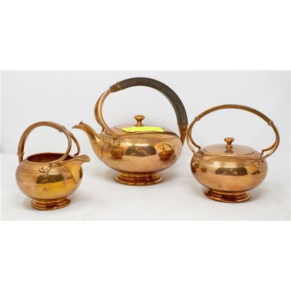 ART DECO COPPER TEA POT CREAM AND SUGAR SET
