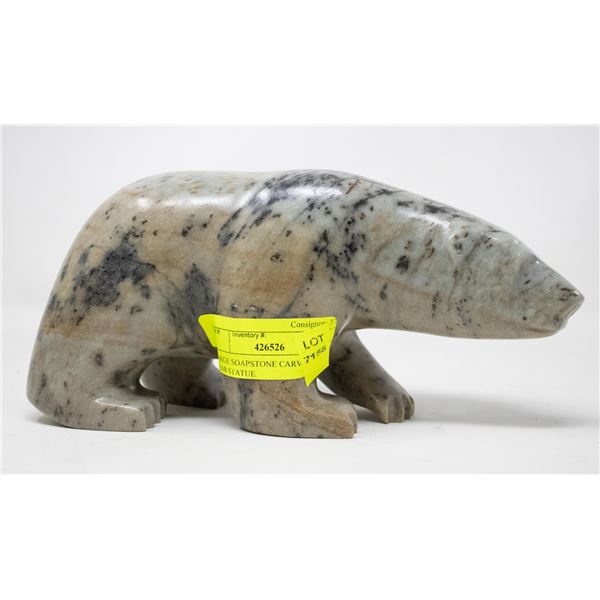 LARGE SOAPSTONE CARVED POLAR BEAR STATUE