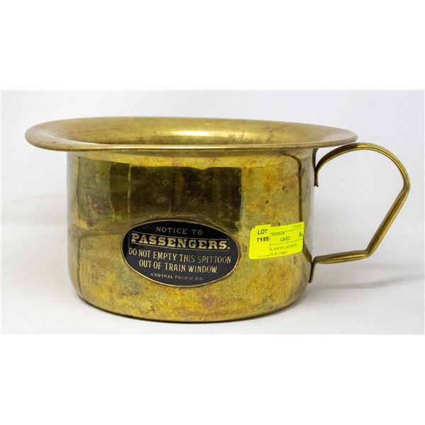 CENTRAL PACIFIC RR BRASS SPITTOON W LABEL