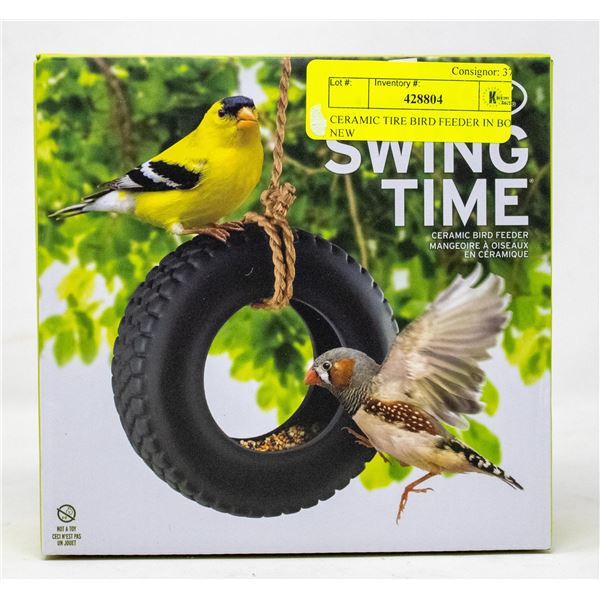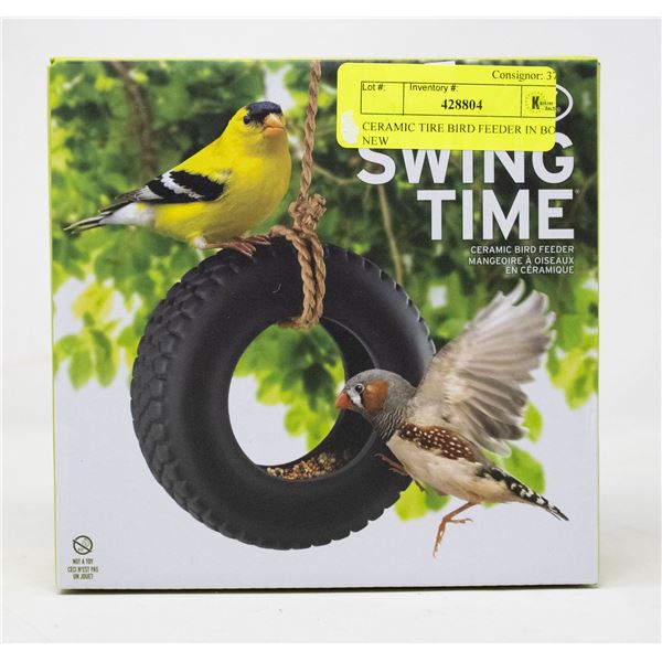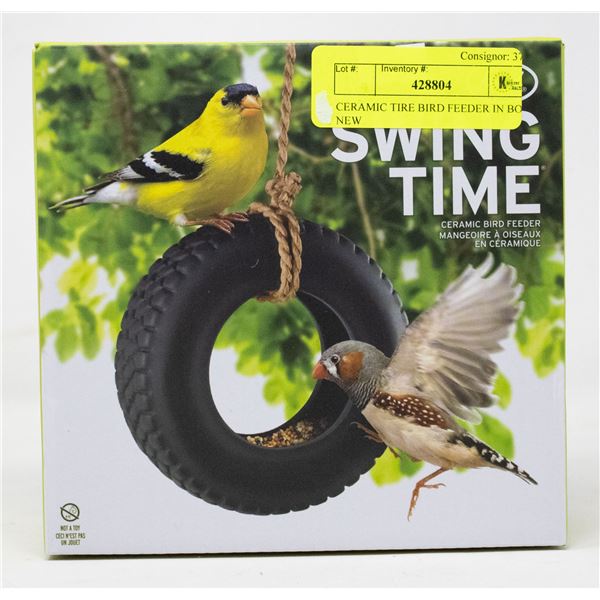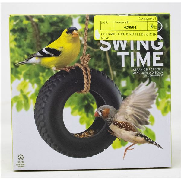 CERAMIC TIRE BIRD FEEDER IN BOX NEW
