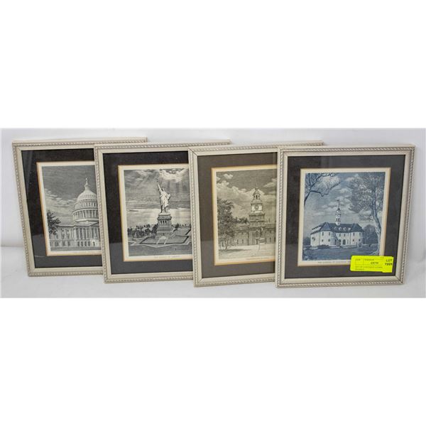SET OF 4 ANTIQUE LITHOGRAPHS FRAMED