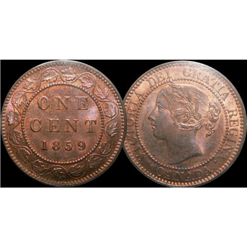 THE FINEST KNOWN! 1859 8/9 ICCS MS65 Red, 95% RED. A fabulous "Victorian" example in pristine condition, don't miss this opportunity to acquire the nicest example on the market. Worth a premim bid. Excessively rare! Unpriced above MS-63