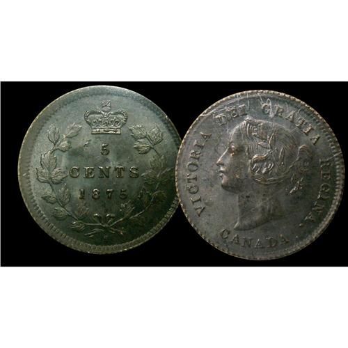 THE FINEST KNOWN! 1875H Small date 5¢ ICCS MS64 PQ+. Lovely blueish tones over full underlying luster. Wow! An amazing "Victorian" key date. Excellent strike with clean fields and great surfaces. The nicest example ever handled by TCNC. A KILLER! The